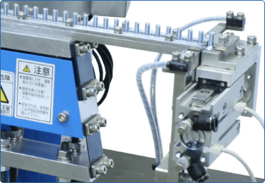 「ピンを立てた状態で整列させたい」というユーザーからの要望に応じ、設計したエスケープユニット。ピンの先端が尖っているため、パーツフィーダだけで立てた状態で整列させることが困難でした。そこで株式会社大善では、パーツフィーダから長手方向でピンを排出し、エスケープによってピンを立てるという方式を採用。タクトにも余裕があったことから、無理なくこの方式が実現しました。